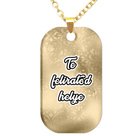 1 kép Egyedi feliratos, rozsdamentes fém dögcédula, világos arany színben (láncra vagy kulcstartóra)