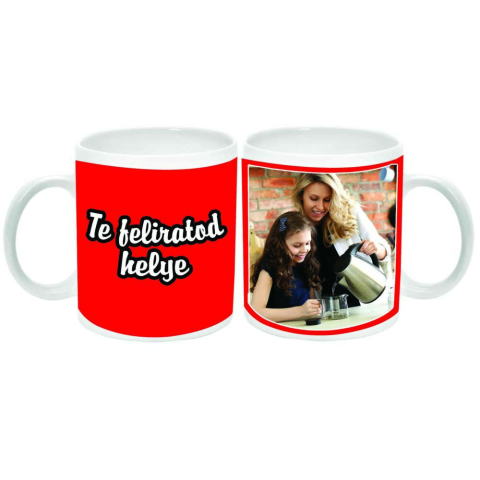 Tedd fel kérdésed a(z) Egyedi fényképes és feliratos Bögre, piros háttérszínnel termékről!
