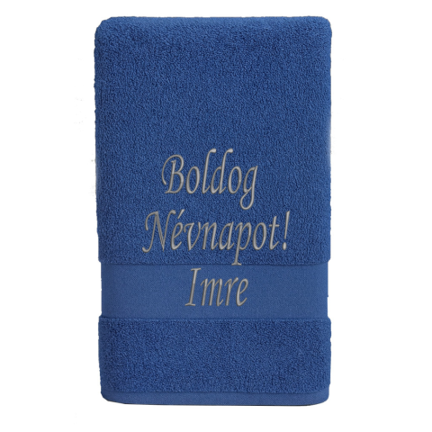 Teljes Egyedi hímzett törölköző – Boldog Névnapot!/Királykék termékleírás
