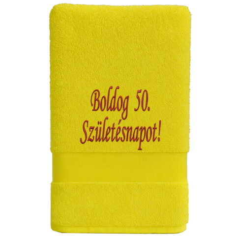 Teljes Egyedi hímzett törölköző – Boldog Születésnapot!/Sárga termékleírás