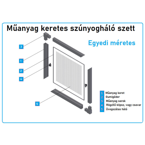 Egyedi méretes, műanyag keretes szúnyogháló szett