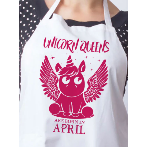 Egyedi szülinapi kötény, Unicorn Queens. Unikornis királynők születnek kötény, választható hónappal. Válaszd ki a kötény színét, majd írd be milyen hónap kerüljön a termékre, és készen is van a tökéletes szülinapi ajándék. Anyaga vászon, mérete 66x78 cm.