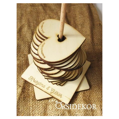 1 kép Egyedi vendégkönyv rúdra fűzhető fa szívecskékkel