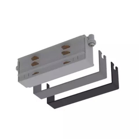 Unipro egyenes toldóelem a sínek csatlakoztatására. A termék fehér színű. A csomagolás fekete és szürke borítást is tartalmaz, amit könnyedén fel lehet pattintani.