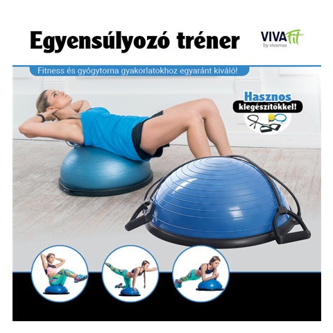 VivaFit egyensúlyozó tréner - közismertebb nevén BOSU labda Használja fitness és rehabilitációs célra: Mélyizomerősítésre és alakformálásra is kiválóan alkalmas Edzés/torna közben instabil közeget hoz létre, mely segít munkára bírni az izmokat Segítségév