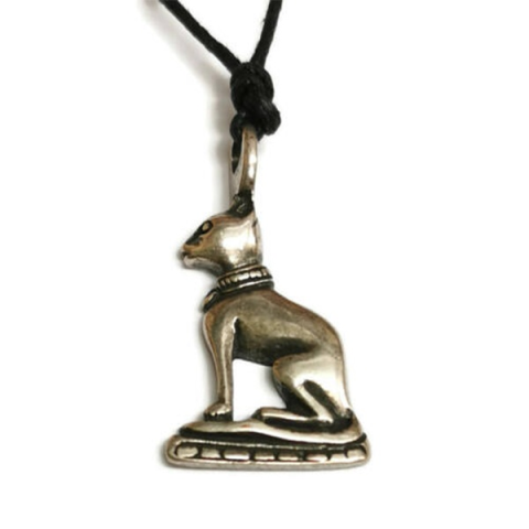 Básztet az egyiptomi mitológia istennője. Baszt néven is emlegették az öröm, a zene és a vigasság istennőjeként. Szent állatai a macskák. A jóindulatú Básztet oltalmazza az embereket a betegségektől és a rossz szellemektől. Segít megőrizni a szerelmet. De ő a szexualitás és a termékenység istennője is. A gyermekre vágyó nők is gyakran viselték az őt ábrázoló amulettet. A férfiakat védi a fizikai támadásoktól.Tulajdonságok:Anyaga: nikkelmentes fém, antik