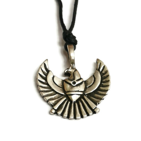 A sólyom Egyiptom legfontosabb jelképe. A neve valójában Hórusz, a fáraók őre az égbolton és a fény Istene. Sólyom képében szárnyal Egyiptom felett, hogy védelmezze apját, Ozirisz királyt. Amikor legyőzte apja gyilkosát, Széthet, ő lett egész Egyiptom királya. Az őt jelképező amulett viselőjének ihletet ad, de segíti leküzdeni ellenségeit, vagy akár saját félelmeit. Törekvővé tesz, hozzásegít a szabadsághoz.Tulajdonságok:Anyaga:nikkelmentes fém, antikol