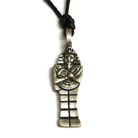 Az Usébti a mágikus beállítottságú egyiptomi túlvilághit jellegzetes terméke, tulajdonképpen egy varázsszobrocska. Általában múmiaformában ábrázolták. Vonásait és nevét viselve képviseli hordozóját, a túlvilágon is. Viselőjét segíti a mindennapi munkában és a szervezésben. Könnyebbé teszi a lelki terhek elviselését.Tulajdonságok:Anyaga:nikkelmentes fém, antikolt ezüst bevonattal,Fekete, állítható waxolt zsinóronMérete: kb 4,5 x 4,5 cm