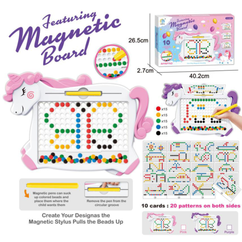 Egyszarvú mágneses tábla - egy különleges tanulási élmény a gyerekek számára! Ez a színes és vonzó mágneses tábla nemcsak szórakoztató, hanem segíti a gyerekek kreativitását és tanulási képességeit is. Az egyszarvú design vará