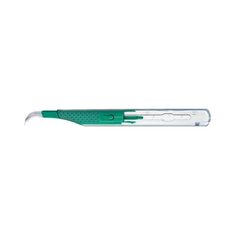 Steril, egyszer használatos szike műanyag nyéllel és pengevédővel, Fig. 12 szénacél pengével Kiszerelés: 10db/doboz