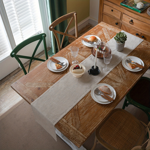 Az egyszínű lenvászon keverék asztali futó tökéletes kiegészítője lehet bármely otthoni enteriőrnek. Képzeld el, ahogy ez a kifinomult és elegáns futó végighalad az asztalodon, azonnal feldobva a teret és egyedivé téve a terítéket. Az anyagkeverék biztosí