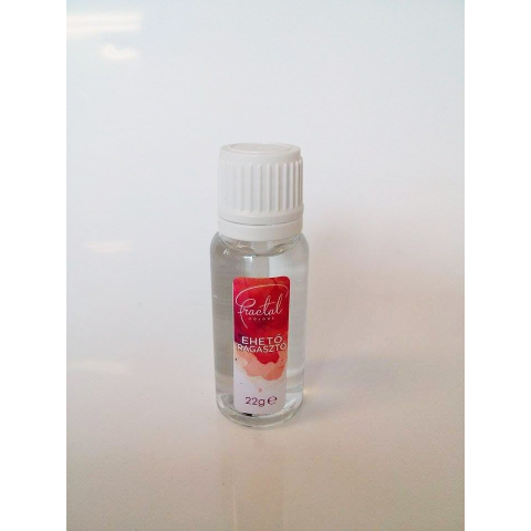 Ehető ételragasztó figurák, szalagok, gyöngyök, stb. stabil rögzítéséhez, 20 ml-es kiszerelésben, ecsetes applikátorral. Színtelen, szagtalan, ízetlen, így nem változtatja meg a torta ízét, sem kinézetét. Összetevők: víz, emulgeálószer (karboxi-metil-c