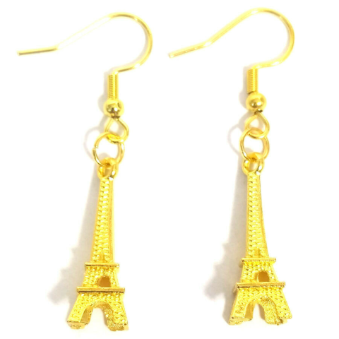 Eiffel-torony fülbevaló, választható arany vagy ezüst színű akasztóval