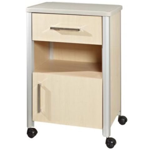 Termék jellemzői: - Fa anyagból készült keret. - A felső asztal műanyagból készül. - A négy él alumínium profil. - 1 fiók - 1 nyitott polc - 1 szekrény. - 4db 360 fokos forgókerék. - Mélység: 440mm - Szélesség: 520mm - Magasság: 800mm .