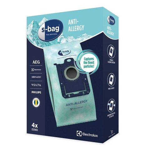 Electrolux PORZSÁK E206S s-bag® Antiallergén porzsák Az s-bag® Anti-Allergy segít az egészséges környezet fenntartásában, hatékonyan javítja otthona levegőminőségét. Tökéletes szűrés A szintetikus porzsák a legapróbb részecskék ellen is hatéko