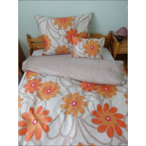 Teljes Elegancia bézs-barna virágos pamut-szatén ágyneműhuzat, 5 részes (kétszemélyes) termékleírás