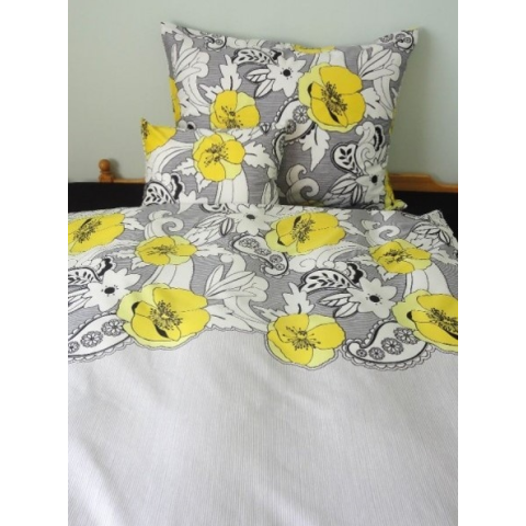 Teljes Elegancia sárga virágos pamut-szatén ágyneműhuzat, 5 részes (kétszemélyes) termékleírás