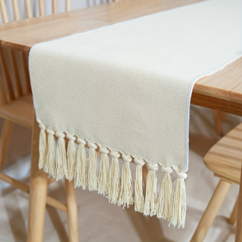 Elegáns Bézs Bojtos Asztalfutó és Tányéralátét Készlet lakástextília termékleírás