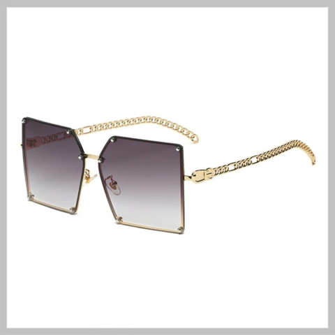 Elegáns Női Napszemüveg – Nagy Lencsés Dizájn OK230WZ1Stílusos és feltűnő megjelenésű, nagy lencsés elegáns női napszemüveg arany színű láncos szárakkal. Ez a modern, különleges fazon garantáltan kitűnik a tömegből, miközben UV400 védelemmel óvja a szemedet a káros napsugaraktól.Termékjellemzők:UV400 szűrő – megbízható védelem az UV-A és UV-B sugarak ellenEgyedi, láncos szár kialakítás arany színbenNagyméretű, szögletes lencsék divatos fémcsava
