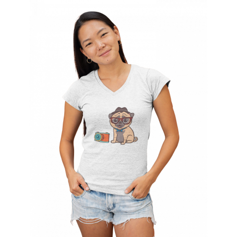1 kép Elegáns Pug - Női V Nyakú Póló