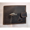 A magas minőségű bőr pénztárca kívülről egy patentos átkapcsolóval rögzíthető ami óvja az iratokat az elvesztéstől . Az igényes kidolgozású fém 3D halminta a pénztárca külső oldalán kapott helyet.