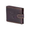 A magas minőségű bőr pénztárca kívülről egy patentos átkapcsolóval rögzíthető ami óvja az iratokat az elvesztéstől . Az igényes kidolgozású fém 3D halminta a pénztárca külső oldalán kapott helyet.