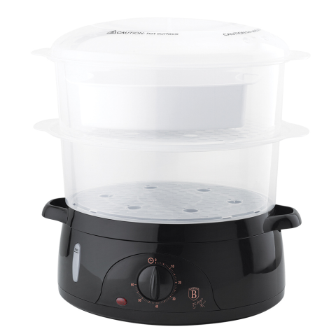 Elektromos gőzfőző 6l BLACK- ROSE GOLDA gőzfőző 60 perces időzítővel, áramellátás-jelzővel és mindkét oldalán víz bevezetéssel rendelkezik. Az edény ideális zöldségek, csirkehús, rizs vagy hal elkészítéséhez. A rizsfőzéshez műanyag tállal van ellátva.Technikai paraméterek:Teljesítmény: 800 WFeszültség: 220-240 V, 50/60 HzKapacitás: 6,0 l