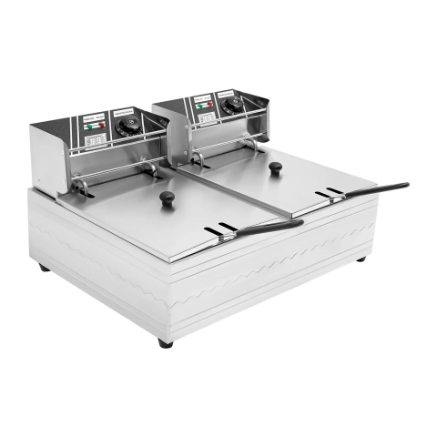 Nagykonyhai elektromos fritőz - Dupla tartályos, állítható hőmérsékletű, rozsdamentes acélból 🍟 Professzionális fritőz éttermek, büfék és egyéb vendéglátóipari egységek számára. A két különálló tartállyal rendelkező fritőz lehetővé teszi, hogy egysze...
