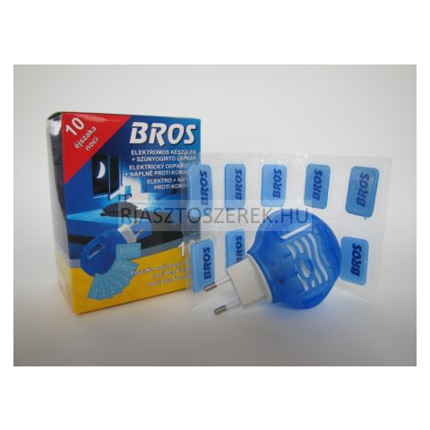 Bros elektromos szúnyogriasztó készülék + 10 szúnyogirtó lapka Szabványos 220V -os falidugóba csatlakoztatható párologtatós szúnyogriasztó készülék. A hatóanyaggal átitatott lapkák alkalmasak a szúnyogmentesítésre beltéren akár nyitott ablakok mellett is.