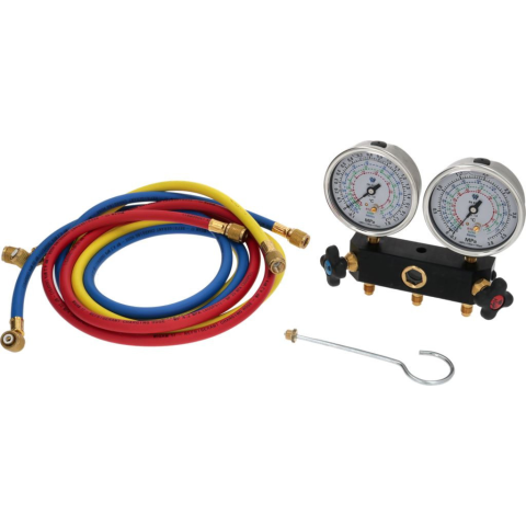 2-utas elemző bőröndben töltőcsövekkel | műanyag tok, poliform belső és védelem | nyomásmérők ø 80 mm | glicerin és 1. osztályú állítócsavar | 3 töltőcső 1500 mm 1/4 SAE | R600a-R290-R1270 gázokhoz