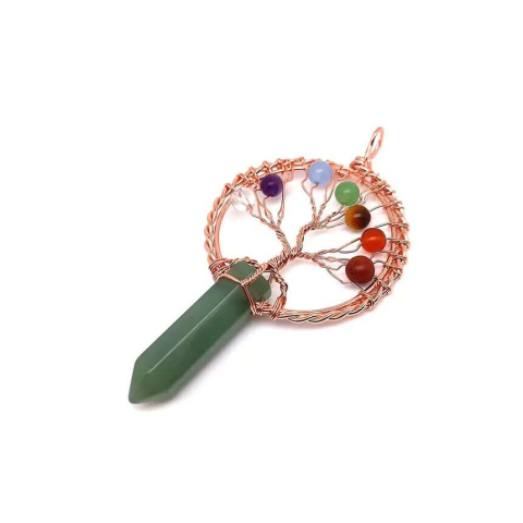 Életfa rose drót csúcs aventurin medál 5x9cm