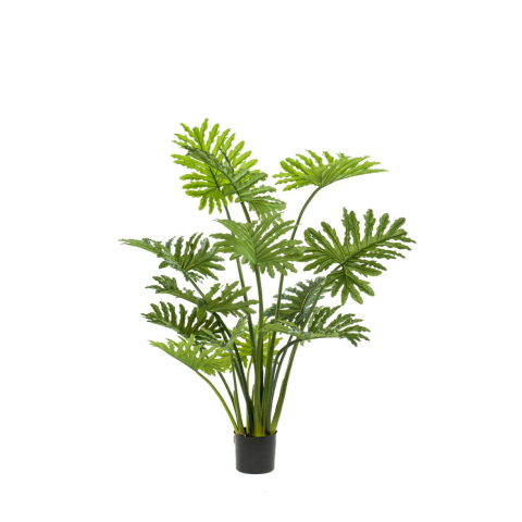 125 cm magas Philodendron Selloum műnövény, 13 sűrűn elhelyezkedő ággal és részletgazdag, szeldelt levelekkel a természetes megjelenésért. Ez a 125 cm-es Philodendron Selloum műnövény látványos, élethű kialakításával bármely tér lenyűgöző zöld kiegés...