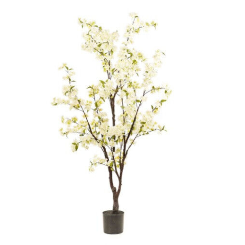 175 cm magas, fehér virágos élethű cseresznyevirág fa fekete cserépben, elegáns és romantikus dekoráció. Ez a 175 cm magas élethű cseresznyevirág fa (sakura) gyönyörű fehér virágaival romantikus és ünnepélyes hangulatot teremt bármely belső térben, t...