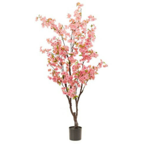 175 cm magas, rózsaszín virágos élethű cseresznyevirág fa fekete cserépben, romantikus és látványos dekoráció.