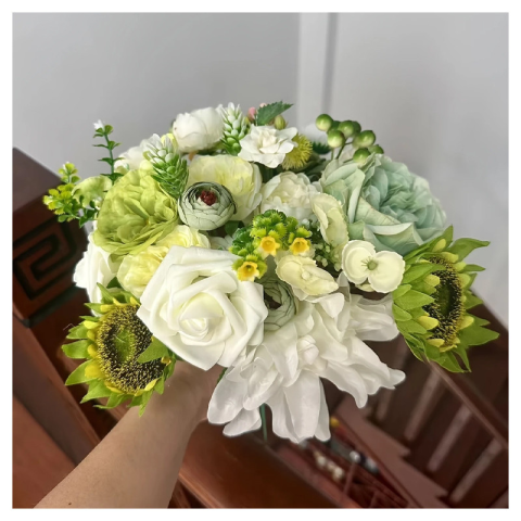 Élethű Esküvői művirágcsokor MP183484 Élethű Esküvői művirágcsokor MP183484 Ez a gyönyörű művirág csokor tökéletes választás azoknak, akik elegáns és tartós virágdekorációra vágynak. A doboz különböző típusú, színben harmonizáló virágokat tartalmaz,
