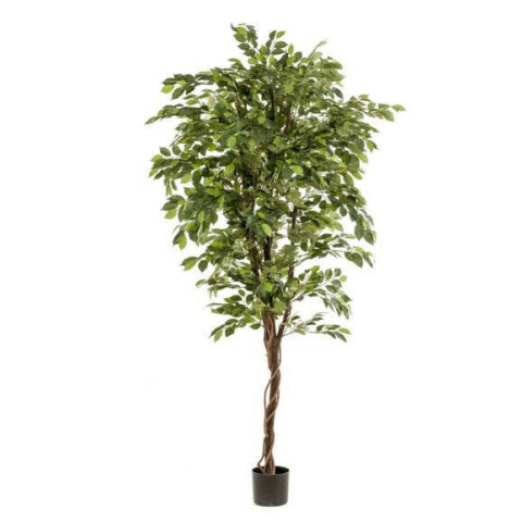 Élethű deluxe mű fikusz fonott törzzsel, 200 cm magasságban, amely lenyűgöző, gondozásmentes zöld dekoráció bármely beltéri térbe. Ez a 200 cm magas deluxe mű fikusz elegáns megjelenésével és sűrű, zöld lombjával bármely helyiséget feldob. A fonott t...