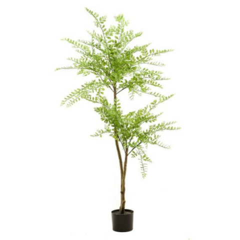 140 cm magas, 2 törzsű élethű Sophora műfa fekete cserépben, finom levelű dekoráció otthonokba és irodákba. Ez a 140 cm magas, 2 törzsű élethű Sophora műfa apró, sűrű leveleivel természetes és friss megjelenést biztosít, ideális választás otthonok, i...