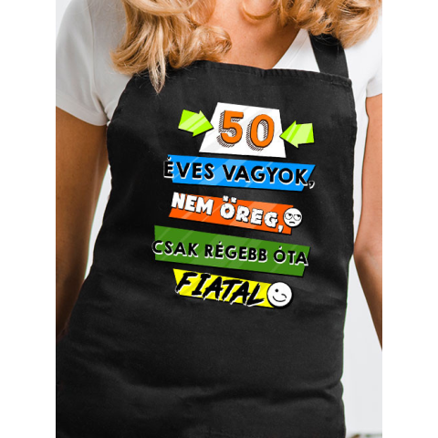 Életkoros kötény, régebb óta fiatal. Nem öreg vagyok csak régebb óta fiatal feliratos kötény választható életkorral. Ez a kötény tökéletes ajándék annak, aki humorral fogja fel az évek múlását. Ha ismersz valakit, aki fiatalos lendülettel, viccesen és éle