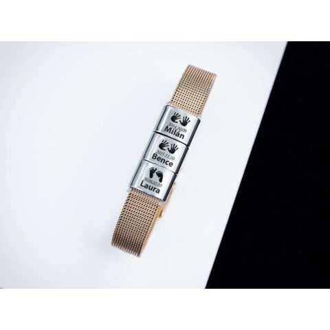 Életünk lenyomatai 3 egyedi medálos MoMents rosé színű acél karkötő karkötő 1 kép