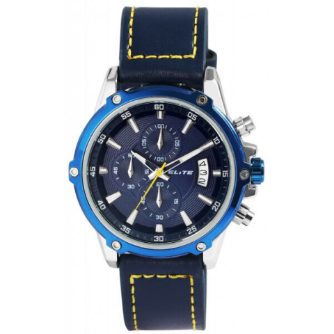 Teljes Elite kronográfos cseppálló férfi karóra kék bőrszíjjal termékleírás