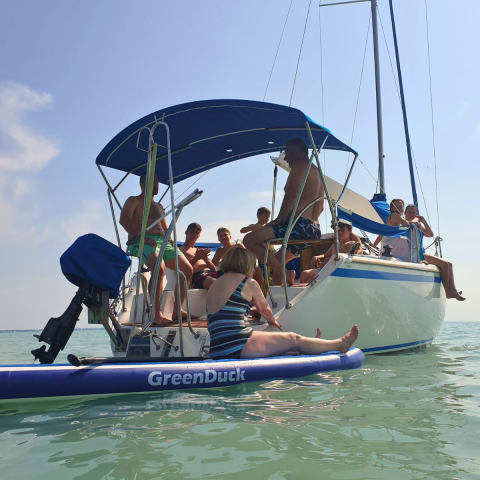 Élvezd a teljes kikapcsolódást és a vidám vízi szórakozást ezen a 2 órás programon! Vitorlázz a Balaton hullámain, fürödj a kristálytiszta vízben, napozz a fedélzeten, élvezd a frissítő fánkot, és próbáld ki magad az SUP deszkázásban!