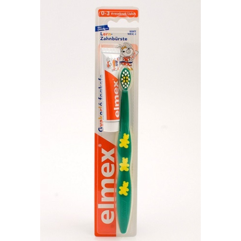 Elmex gyakorló lágy fogkefe (1 db) és fogkrém 0-3 éves gyerekeknek (12 ml). A termék színe véletlenszerűen kerül kiválasztásra.