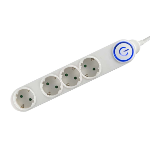 Elosztó világítós talpkapcsolóval NV 04TK-5/WH/1,5NV 04TK-5/WH/1,5 típusú talpkapcsolós elosztó világító kapcsolóval van ellátva. A termék előnye, hogy a negyedik aljzat külön található, hogy kényelmesen elférjen pl. egy adapter.