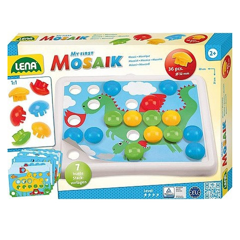 Első mozaik képkirakó játékom - dinó Készíts nagyszerű képeket a korongok segítségével! Az Első mozaik képkirakó játékom készlet kiváló kikapcsolódás lehet a 2 éves korosztály számára A kedves dinótól, az aranyos cicáig, a mókás almán át fantasztikus