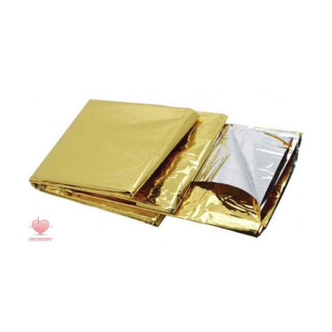 Anyag: poliészter. Jellemzők: ezüst/ arany színű sürgősségi takaró. Nyári alkalmazás: ezüst oldalával kifelé visszaveri a hőt, így véd a felmelegedés ellen. Téli alkalmazás: arany oldalával kifelé benntartja a hőt, így véd a gyors hőveszteségtől. Méret: 1