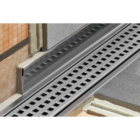 1 kép Élvédő Schlüter zuhanytálcába rozsdamentes acél szálcsiszolt 100 cm SPRA23EB100