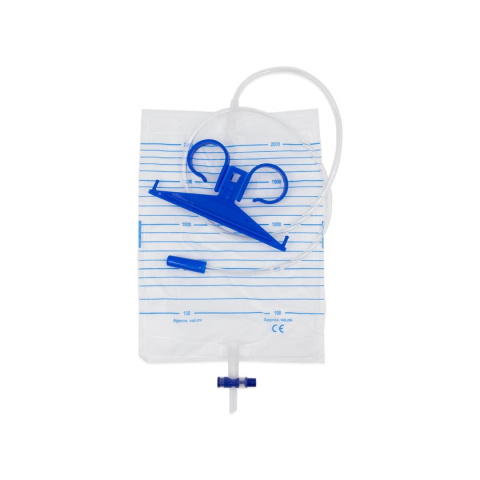 1 kép Elysium steril T-csapos vizeletgyűjtő zsák akasztóval 2000 ml