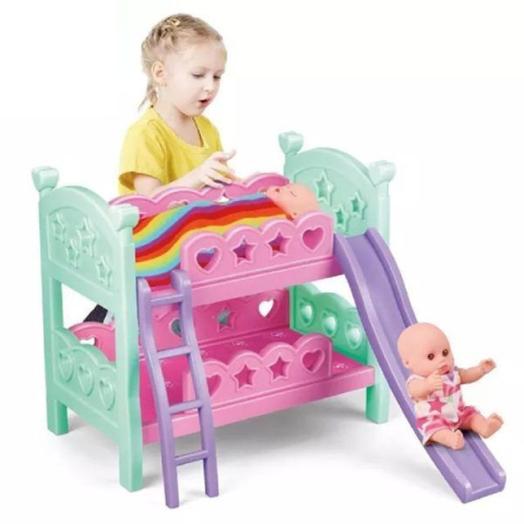 1 kép Emeletes játék babaágy korláttal, létrával és csúszdával