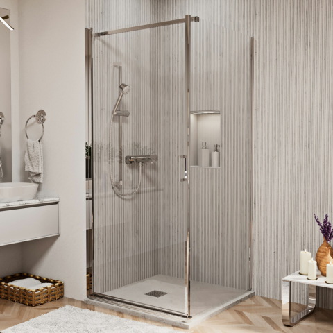 80×80×195 cm 90×90×195 cm• Könnyű szerelhetőség• Erősített, fényes alu profilok• Üvegvastagság 6 mm• Állítható profilok a falhoz rögzítésnél: 1,5-2 cm• Mágnesesen záródó ajtók• Vízzáró profilok• Elegáns króm alkatrészek• Tartós, krómozott fogantyú• Kr...