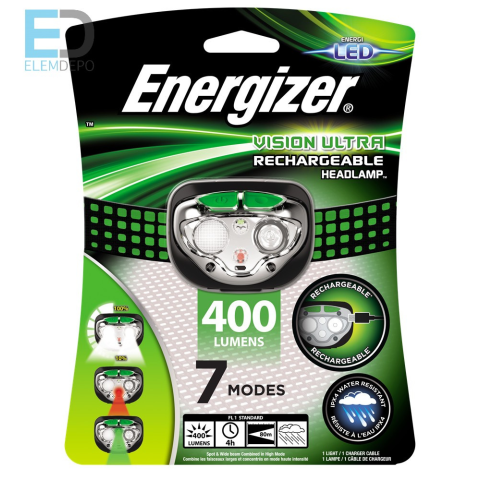Energizer Vision Ultra Rechargeabla Headlamp 400 Lumens fejlámpa Újratölthető fejlámpa. ENERGIZER® RECHARGEABLE HEADLIGHT Erős, újratölthető, környezetbarát fejlámpa, amely a gyakori, akár mindennapos használathoz vagy a különböző kültéri sportokhoz egyar